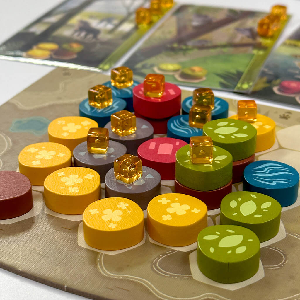 In Harmonies, build landscapes by placing colored tokens and create habitats for your animals. To earn the most points and win the game, incorporate the habitats in your landscapes wisely and have as many animals as you can settle there.