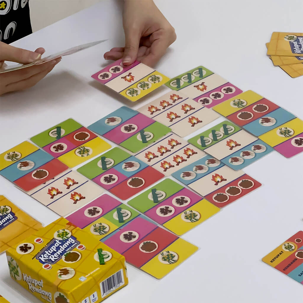 Celebrate the spirit of Hari Raya with Ketupat Rendang, a light and festive card game where cooking and strategy come together. Each player has a secret dish to prepare, and you’ll need clever card placement to make sure your feast is served while blocking your friends from completing theirs!