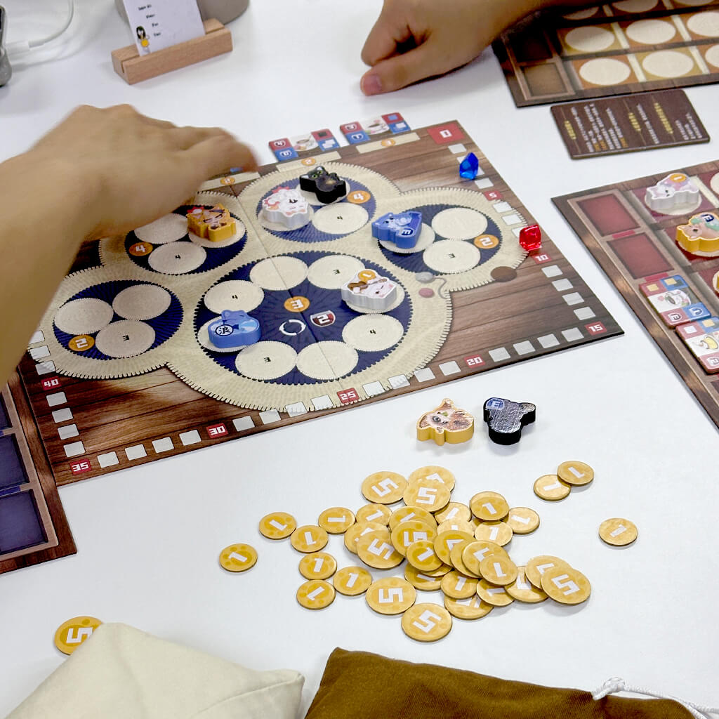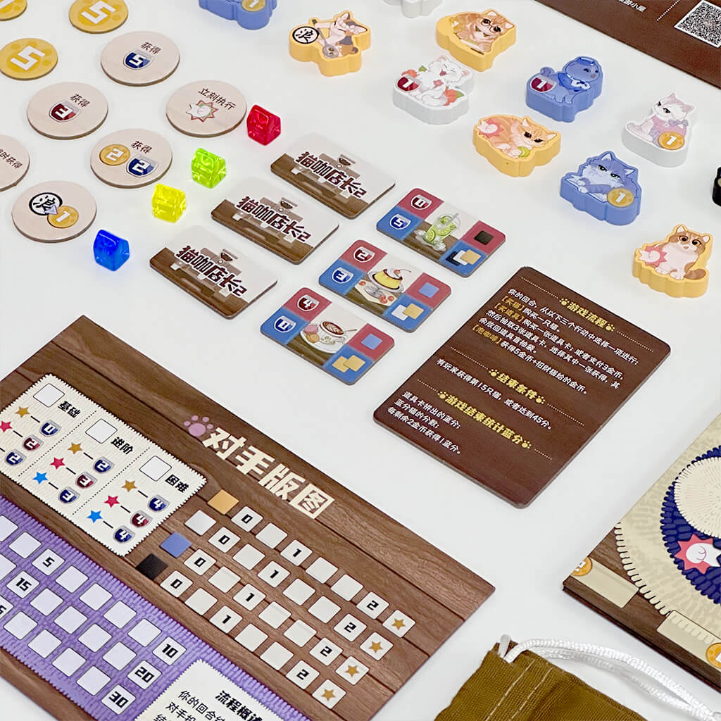 当某个玩家获得45分或收养15只猫咪时,游戏结束,进行终局分数结算,得分最高者获胜!