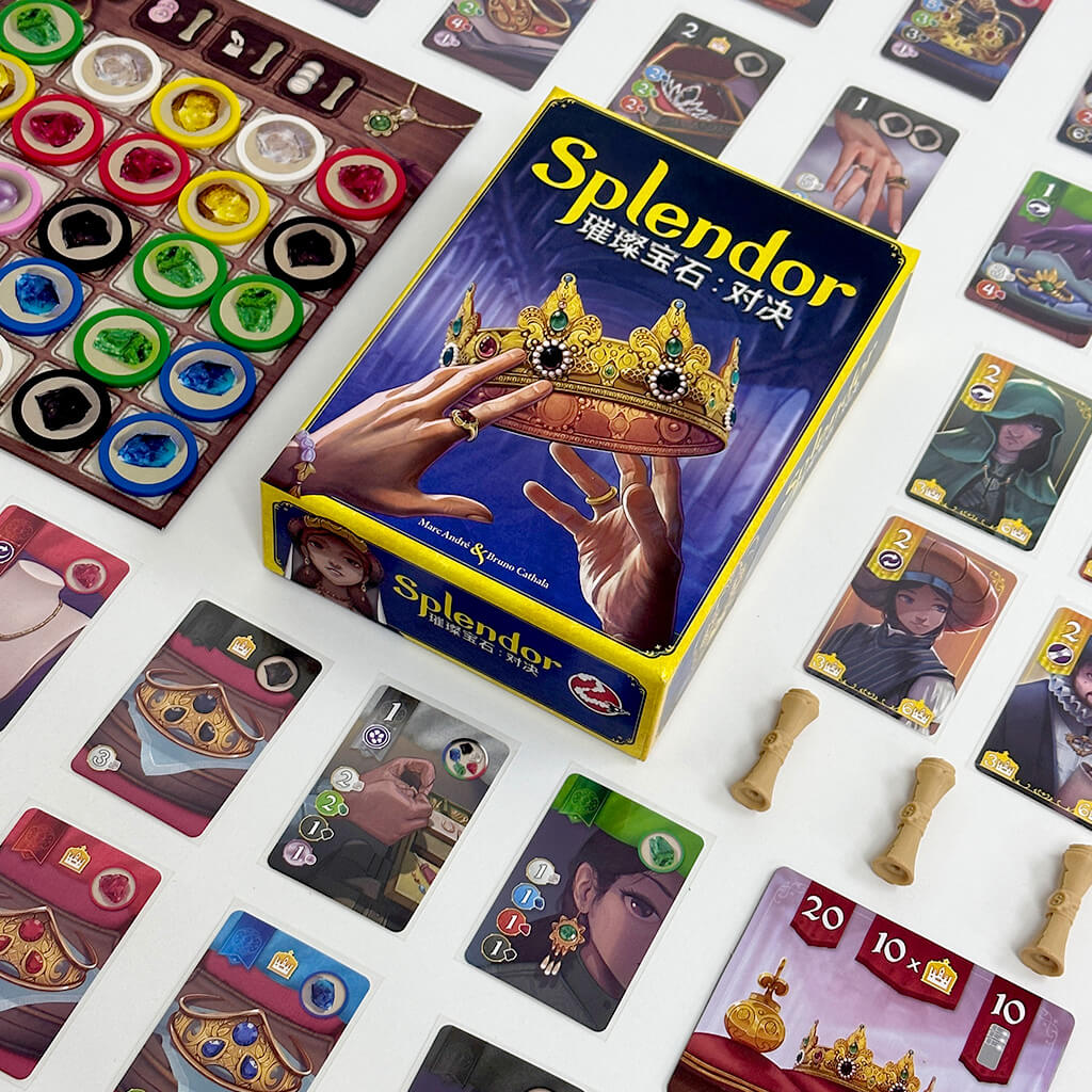 In 「Splendor: Duel」, you’ll lead a gem merchant guild, crafting exquisite jewelry for Renaissance leaders to boost your prestige and wealth. Compete against rivals and prove your business skills!