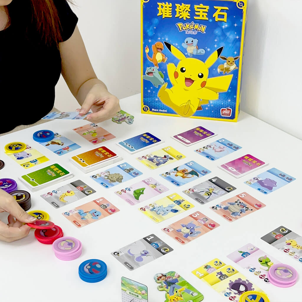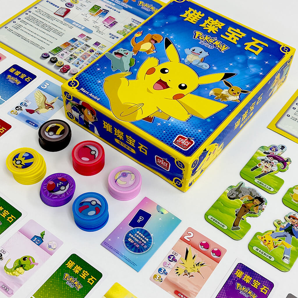 A strategy-filled board game packed with challenges that takes you into an exciting Pokémon world! In this game, you’ll collect Poké Balls, capture and evolve Pokémon, and gradually build a powerful team to march toward victory! With clever card purchasing and strategic planning, challenge your opponents and prove yourself as the ultimate Pokémon Trainer! Step up to the challenge, become the ultimate Pokémon Trainer, and claim the glory!