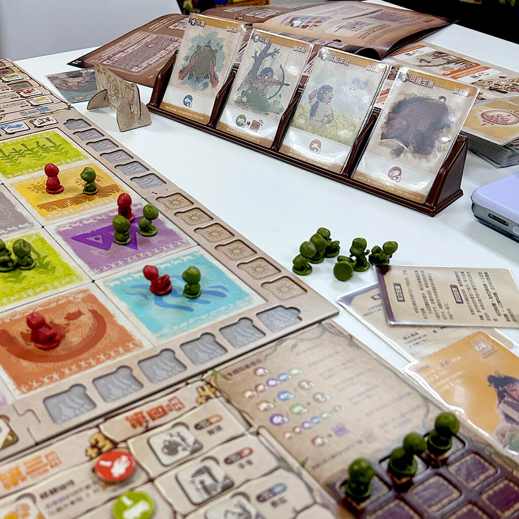 选择地形格子,召回族人并获得资源。