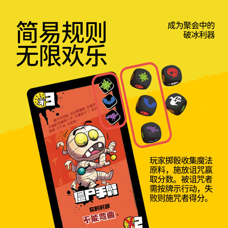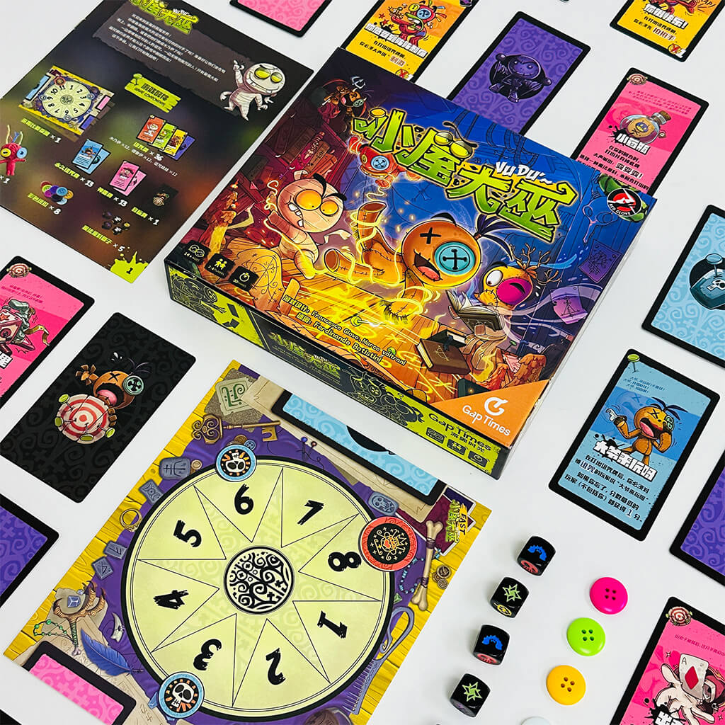 「小屋大巫」是一款充满幽默与互动的桌游,玩家们扮演巫师,通过施放搞笑的诅咒来互相整蛊。游戏中的巫毒娃娃带有不同的幽默效果,如“掷骰子前要学呱叫”,让玩家捧腹大笑。适合在聚会中进行,欢乐气氛十足。